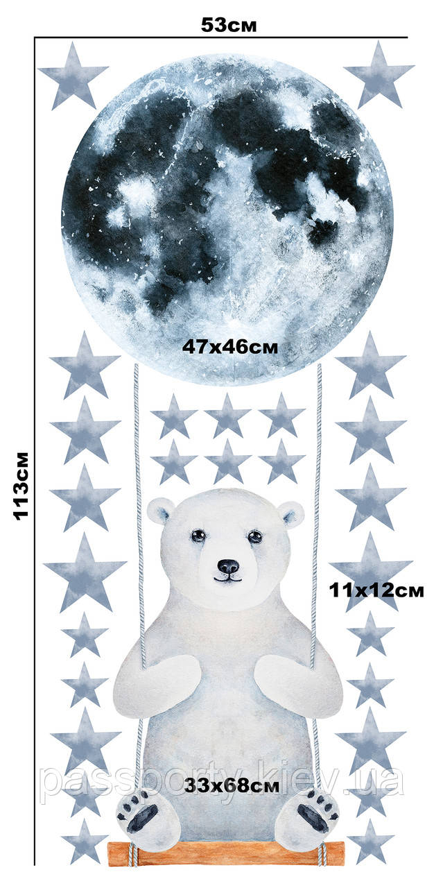 Розміри кожної наклейки вказані на останній фото. ( Первое фото приклад, як можна клеїти в інтер'єрі)